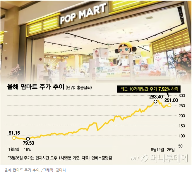 팝마트는 ‘블라인드 박스’라는 독특한 유통 방식을 통해 캐릭터 수집 문화를 확산시킨 회사입니다. 박스를 열기 전까지 어떤 캐릭터가 나올지 모르는 방식은 희소성과 기대감을 동시에 자극합니다. 덕분에 몰리, 라부부, 디멘션 같은 자체 캐릭터들이 글로벌 팬덤을 형성했고, 이 팬덤은 현재 리셀 시장에서 수백만 원의 프리미엄을 만들어내고 있습니다. 우리가 여태까지 접해왔던 IP 비즈니스의 유통 확대 방향과 전혀 다른 방식이죠. 우리가 주목해야 할 점이 바로 여기에 있다고 생각해요. 팝마트가 기존 캐릭터 산업과는 완전히 다른 방식으로 성장하고 있다는 점입니다.